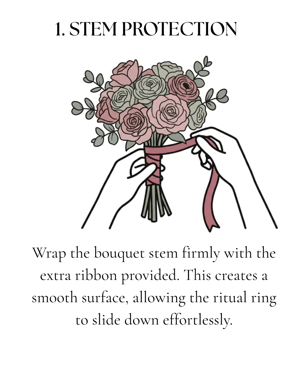 • A gift for you: With every order, we include 1.5 m of extra ribbon for free to wrap your bouquet stem. This ensures the hoop or Snap-On strap fits perfectly and slides smoothly.