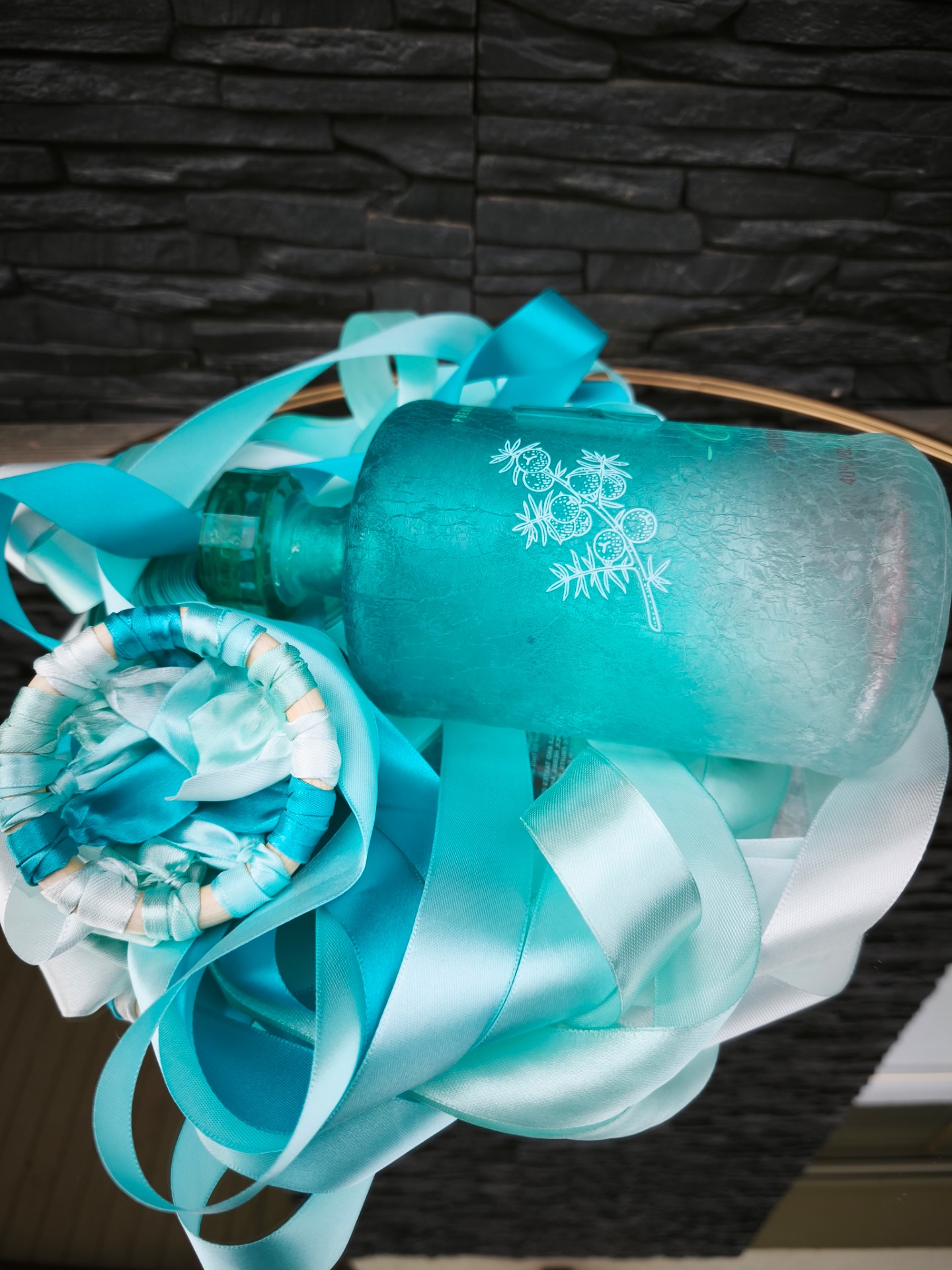 A ribbon ceremony set in refreshing shades of turquoise and white with a premium wooden ring. This combination brings sea-breeze freshness and an original style to your wedding day. The wooden ring (8 cm diameter) is lightweight and perfect for brides seeking natural materials with a touch of the exotic. Satin ribbons create an unforgettable visual effect during the bouquet dance or the fun bottle-weaving ritual for men.